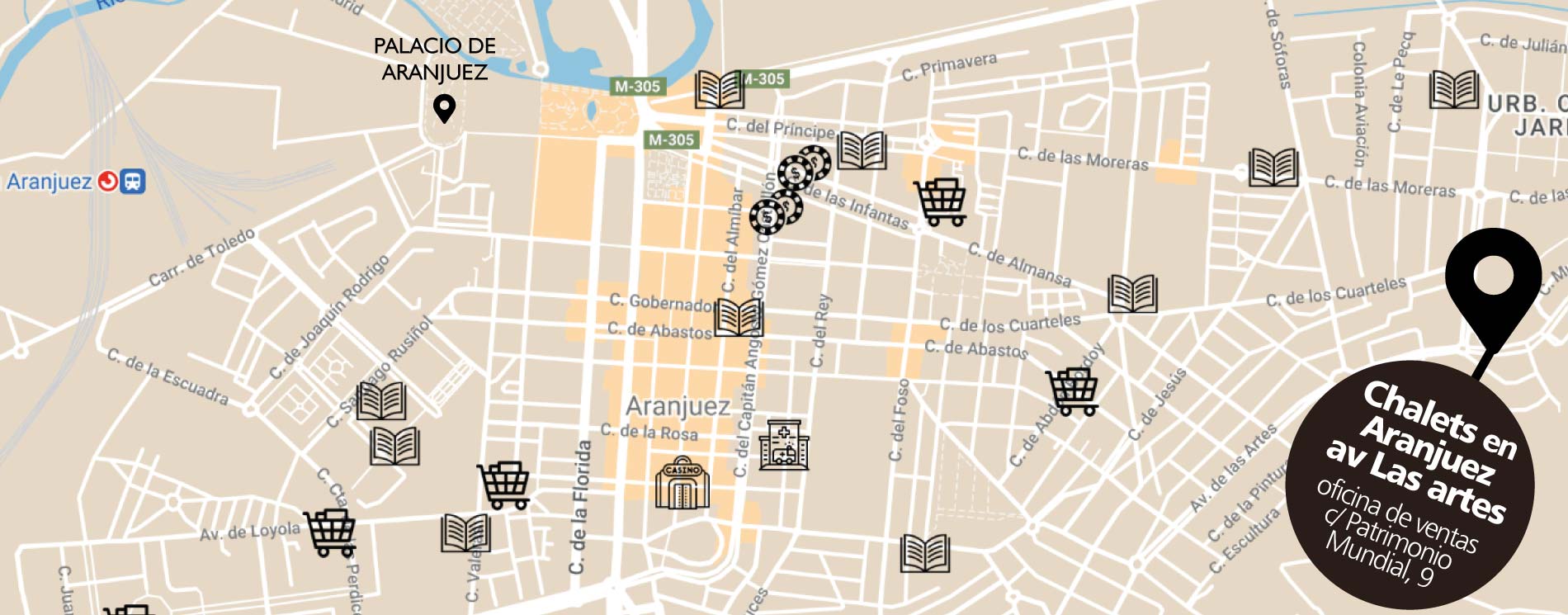 Las viviendas se encuentran situadas en una zona de expansión consolidada denominada Ciudad de las Artes, término municipal de Aranjuez, Patrimonio de la Humanidad.